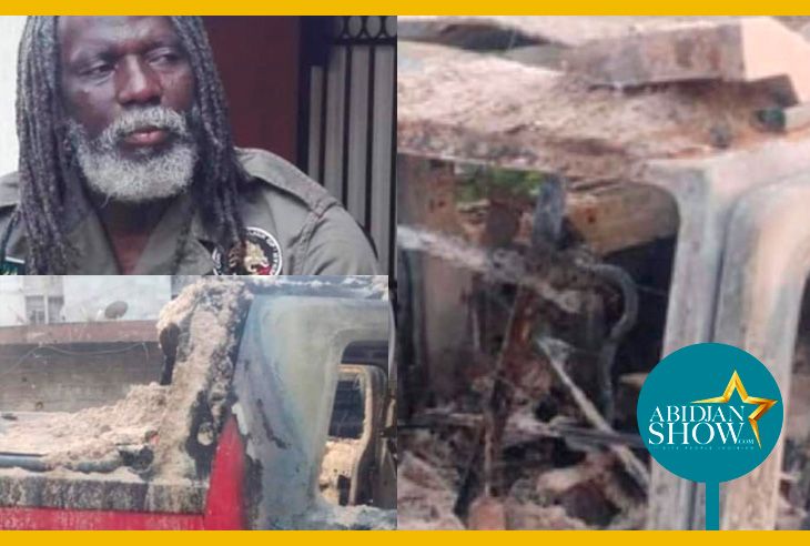 Une voiture de l artiste Tiken Jah, actuellement en tournée au Canada a été calcinée dans un incendie dont on ignore l origine. Les faits se sont passés au domicile de l artiste au quartier Maroc, dans la commune de Yopougon ce lundi 04 janvier 2021.