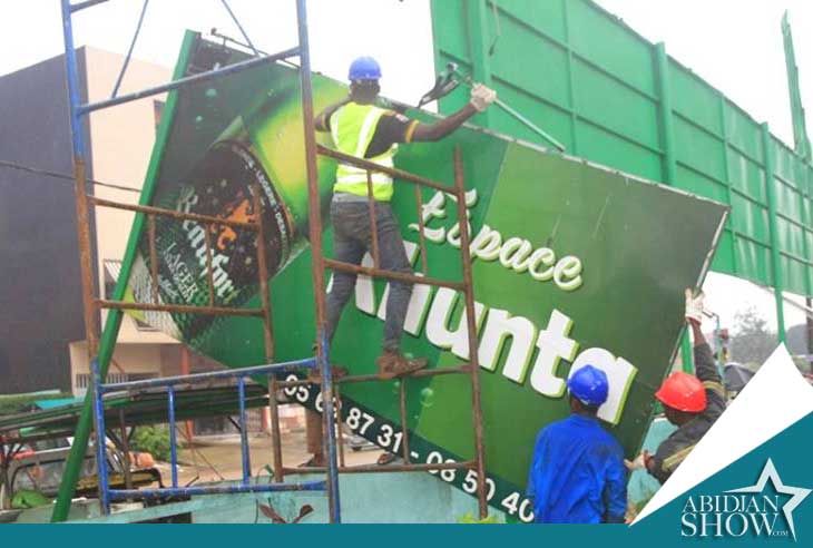 Depuis jeudi dernier, plusieurs enseignes personnalisées de maquis et espaces gastronomiques ont été démantelées à Cocody et Marcory, à l initiative du groupe SOLIBRA. En effet, face à la forte présence d'enseignes de boissons alcoolisées dans la capitale, cette brasserie avait publié un communiqué officiel pour marquer sa position nette de préserver le cadre de vie et ne pas être visuellement agressive vis-à-vis de la jeunesse et des enfants.