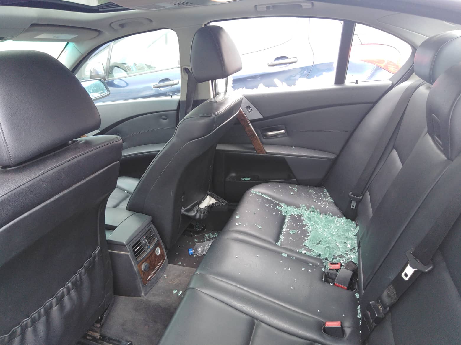 Son véhicule de type BMW Série 5 venait d être vandalisé. Le ou les filous ont pris le soin de casser la vitre arrière du véhicule afin d'en récupérer le contenu.