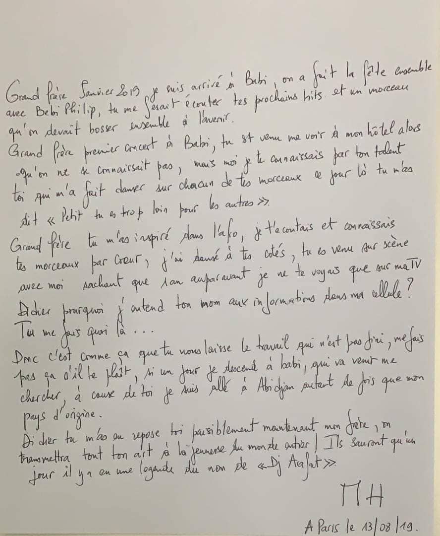 Disparition Arafat DJ: Depuis sa cellule, MHD réagit à travers une lettre