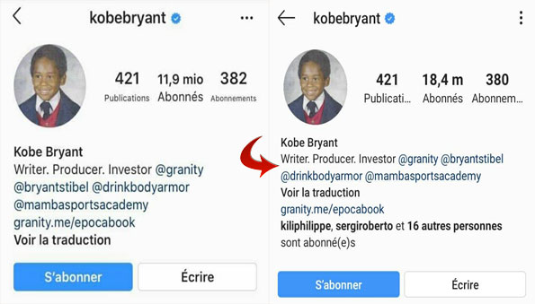 Comme la vie peut être étrange parfois ! Avant son décès tragique survenu ce dimanche, en Californie, Kobe Bryant comptait 11 millions d'abonnés sur son compte Instagram.