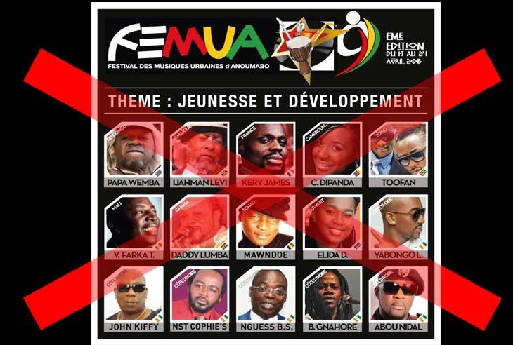 La place de la paix, à Korhogo qui devait accueillir l étape du Femua ne verra pas vibrer le public de la capitale du nord de la Cote d Ivoire. Les décibels ne déchireront pas le ciel de cette ville pourtant parée, depuis des jours pour cette grande aventure musicale. Les équipes techniques avaient tout ficelé. La gigantesque scène montée, depuis des jours, s apprêtait à accueillir Abou Nidal, Nguess Bon Sens, Ijahman et Papa Wemba.