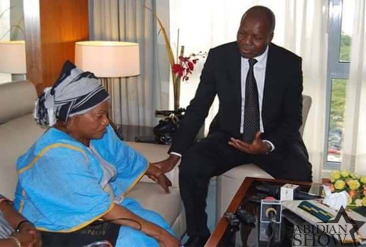 Arrivée à Abidjan au lendemain du décès de son époux, la veuve de papa Wemba a été reçue ce mercredi 27 avril à son hôtel par le ministre ivoirien des affaires étrangères Albert Mabri Toikeusse. Au cours des échanges, maman Amazone qui continue de pleurer son défunt époux à chaque fois que l occasion se présente à fait des révélations au ministre. «Il y a beaucoup d'amertume, de voir une belle histoire prendre fin ainsi. J avais 14 ans et lui 20 ans quand nous nous sommes rencontrés et il part sans me dire au-revoir, ni à ses enfants et ses petits enfants qui l'aime tant. Il avait souhaité voyager avec moi pour la Côte d'Ivoire mais j'ai refusé car, je ne savais pas pourquoi, mais j'avais besoin de prière et j ai refusé de venir avec lui, » a déclaré la veuve. «Je suis allé prier trois jours durant et dimanche matin quand j ai ouvert mon téléphone, le premier coup de fil que j ai reçu, m a donné la triste nouvelle, » a-t-elle ajoutée. Cette dernière soutient que son époux est parti sans dire au revoir à ses enfants, petits fils et elle. Venu traduire une fois de plus la compassion et les condoléances du gouvernement à la veuve, le ministre Albert Mabri Toikeusse a réaffirmé que c est la Côte d Ivoire qui est en deuil face à cette perte énorme.
