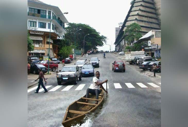La pluie et son corollaire d inondations. Inondations et son corolaire de désagréments. Désagréments et son corolaire d anxiété. Anxiété et son corolaire d imagination .sur le net chacun y va de ses idées. Pour alerter les autorités. C est dans ce contexte qu évolue le génie des infographes des réseaux sociaux. Nous avons piqué cette photo sur la page facebook des Infographes unis. Véritable coup de c ur. Belle image qui attire notre attention à tous. Si on n y prend garde, c est notre Plateau qui risque de d être inonde. Image aussi qui semble traduire une révolte : si c est le Plateau qui inondait, il y a longtemps qu on aurait trouvé la solution