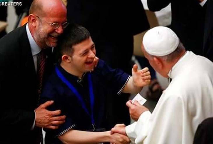 Avant la grande messe de demain avec les malades place Saint-Pierre, le Pape a reçu ce midi au Vatican les participants de la conférence célébrant les 25 ans de l institution du Secteur pour la catéchèse des personnes handicapées, organisée par la conférence épiscopale italienne. Salle Paul VI, le Pape a rencontré des milliers d handicapés et les personnels accompagnants. Deux personnes handicapées lui ont posé des questions auxquelles le Pape a répondu, sans texte préparé. Ce fut l occasion pour le Pape de rappeler la richesse que nous apportent les handicapés et les défis qu ils représentent à l Eglise.