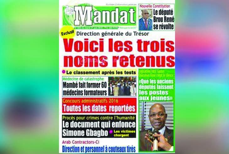 Notre choix sur la Première page du Mandat, journal proche du Pdci, est la déclaration du général Gaston Ouassenan. "Que les anciens députés laissent leur poste aux jeunes ». C'est une prise de position importante. Ouassenan même fait partie des anciens. Et au Pdci justement les jeunes se plaignent régulièrement de ne pas avoir assez de places. En ce moment, de chauds débats ont lieu au sein du plus vieux parti pour le choix des candidats aux législatives. L'ancien ministre vient d'apporter son soutien aux jeunes. Reste à savoir qui est jeune. Parce qu'au Pdci ça aussi c'est un débat. A quel âge on est jeune ?