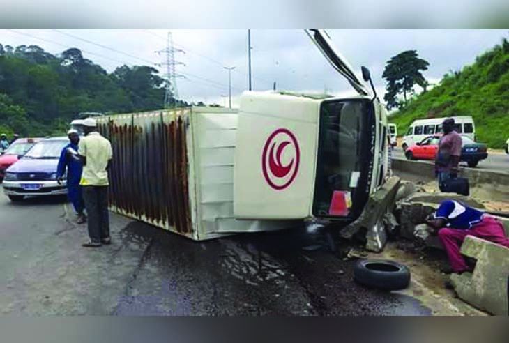 Tout de suite, il faut donner l'information qui peut gâcher la mélancolie : l'accident n'a fait aucune victime. Le conducteur seul à bord a pu s'en tirer. Dieu merci. Parlons donc de sa cargaison. Du vin. Des bouteilles étalées, brisées. Laissant fuir le contenu cher aux Baoulé. Cher aussi aux habitants de Yop. L'accident a provoqué un embouteillage monstre. Du fait des usagers qui vont de tous les commentaires à la vue du vin. Les Ivoiriens sont formidables.