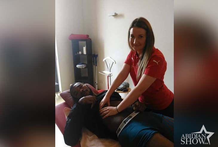 Le football de haut niveau, c'est dur. Éprouvant. Les clubs professionnels ambauchent donc un personnel pour chaque besoin de leurs athlètes. Médecins, kinés et masseuses. De toutes les séances celles des masseuses est très prisée par les footballeurs. Surtout lorsqu'ils débordent d'humour tel que Serey Di . Notre champion d'Afrique qui aime bien rigoler (il rit beaucoup, même s'il a pleuré devant les caméras) a posté cette image. Séance de rééducation. Avec une spécialiste qu' il aime bien.