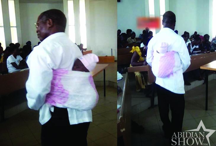 Bouake. Université Alassane Ouattara. Nous sommes en pleine composition. Parmi les étudiants, une nourrisse. Elle est arrivée à l'examen avec son bébé. La compo démarre. La mère est concentrée. Tout comme les autres étudiants. Ca chauffe. Mais le bébé lui n'a cure de tout cela. Son heure de s'exprimer est arrivée et il le fait. Il pleure donc. L'étudiante est obligée d'abandonner ses copies. Heureusement pour elle le prof commis à la surveillance est.extraidinaire. il prend le bébé et le porte au dos. Beau geste. Très beau geste.