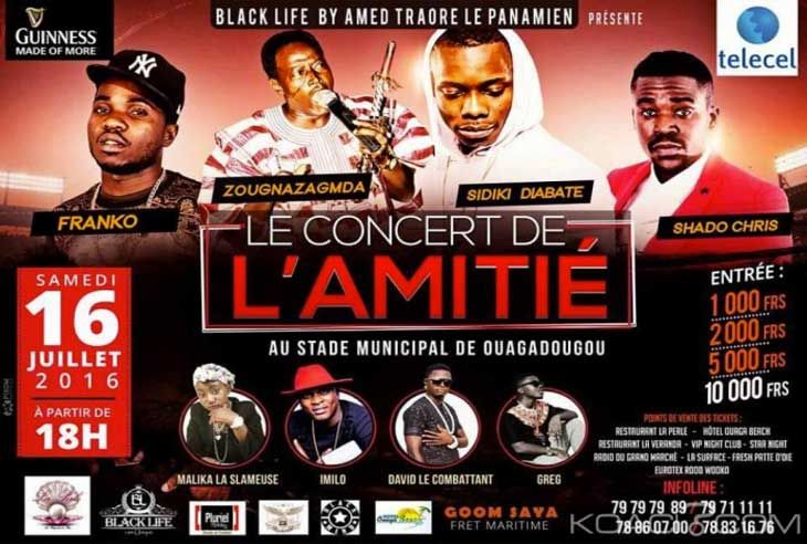 Un concert intitulé Le Concert de l Amitié devait se tenir à Ouagadougou puis à Bobo-Dioulasso les 16 et 17 Juillet. Eh bien, les dits concerts viennent d être annulés. Du moins, ils ont été purement et simplement interdits. Le secrétaire général du ministère de la culture du Faso a fait une déclaration à l édition de 20 h du journal télévisé de RTB, lundi, dans ce sens. Outre les artiste Burkinabé (Imilo Le Chanceux, David Le Combattant, Malika, etc ), cette affiche annonçait des artistes étrangers. Notamment Shado Chris de Côte d Ivoire, le Malien Sidiki Diabaté et la jeune coqueluche camerounaise, Franco, auteur de la chanson à succès Collé la petite . Et depuis, la polémique s est emparé du milieu culturel au Burkina. Avec notamment deux camps qui s affrontent. Mettant du coup les réseaux sociaux en ébullition. Voici les raisons évoquées par monsieur Stanislas Méda, le représentant du ministère de la culture du Faso : « Le concert ne pourra pas se tenir, tout simplement parce qu un groupe d individus a décidé d organiser une manifestation culturelle. Sans être soumis à la règlementation. Il s agit notamment d une licence d entrepreneur qui est exigée à tous les entrepreneurs qui organisent de telles manifestations. En plus de la licence, il y a une autorisation par rapport à la manifestation que l entrepreneur doit avoir. Ceux qui organisent le concert de l amitié ne se sont conformés à la réglementation. C est pourquoi nous avons interdit le concert » justifie-t-il. Depuis c est la levée de boucliers. En plus des réseaux sociaux embrasés depuis lors, une campagne avait été lancée par une artiste chantre, une semaine auparavant, en vue d une pétition contre ce concert. Toutes ces raisons sont-elles suffisantes pour amener à une interdiction pure et simple ? Les avis divergent. Pas ceux de nombreux confrères Burkinabé qui voient en cette interdiction une cabale contre le jeune chanteur Camerounais. Pourquoi ? Les tenants de cette thèse s appuient sur le « Non ! » catégorique adressé à Soré Salfo Jah Press, au mois d Avril, par le ministère de la culture, quand celui voulait inviter Franco pour la soirée des « Kundé d Or ». Beaucoup voient en l interdiction de cette autre affiche comportant Franco, une simple translation. Pourtant la structure Black Life, pilotée par Ahmed Traoré n est pas à sa première expérience dans le domaine du spectacle. « Les motifs de cette interdiction sont à chercher ailleurs » font remarquer la plupart des confrères qui se sont prononcé sur ce sujet qui secoue en ce moment, le monde culturel au Faso.