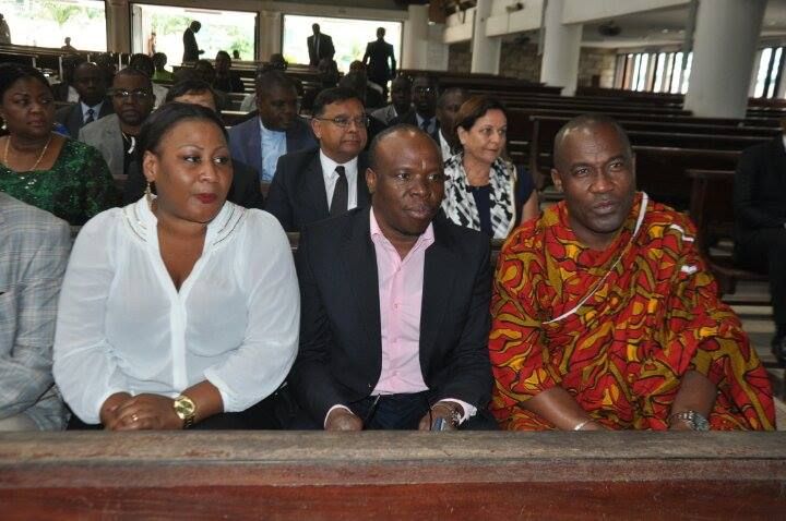 Sur cette image, de gauche à droite, on peut voir, l'épouse du ''Gaou boy'', Asalfo et Aby Raoul, le maire de Marcory. Présent à Abidjan depuis une dizaine de jours, Asalfo et son épouse était au premier rang de la messe spéciale dédiée en la mémoire de Papa WEMBA. Tout comme le premier magistrat de Marcory, encore venu soutenir le groupe Magic System.